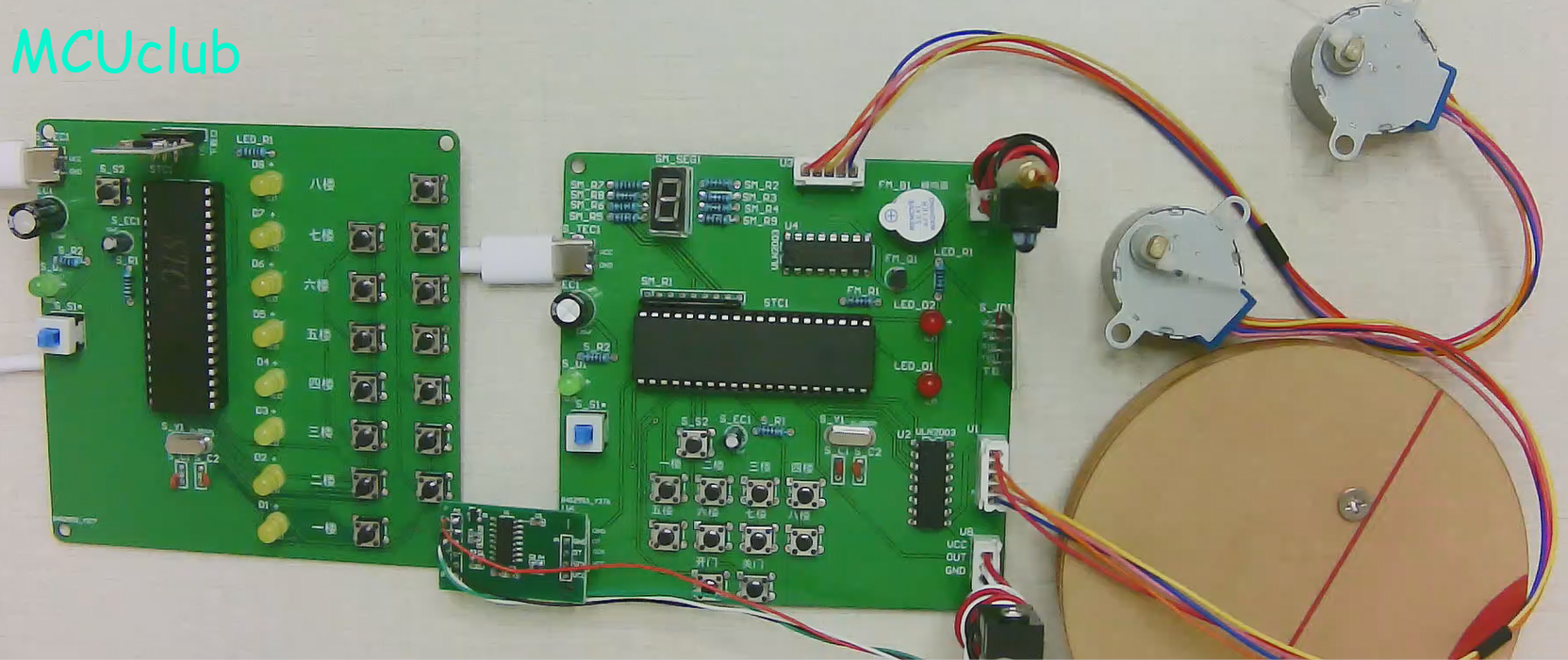 3、通过另一个四相步进电机模拟电梯升降,每转一圈,代表一层
