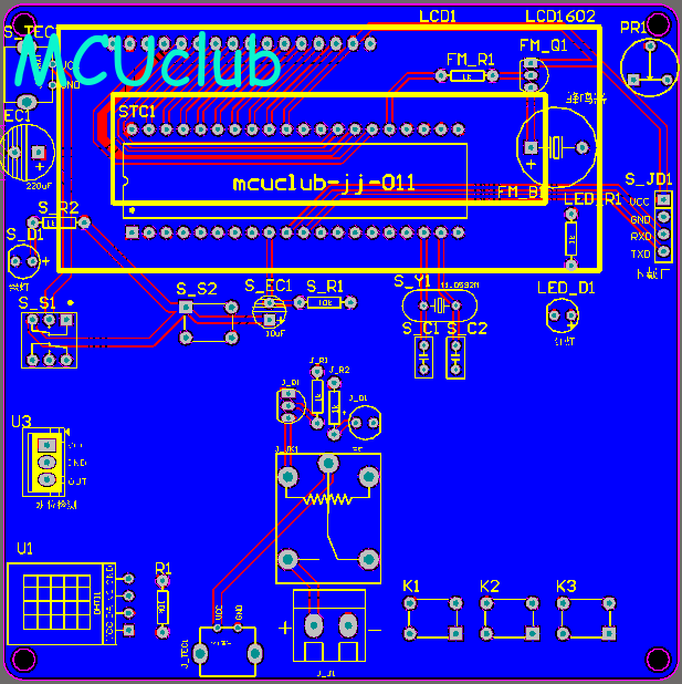 注意:PCB图中间有一个项目编号,隐藏在单片机底座下,插入单片机后不会看到。如果想截没有项目编号的PCB图,可在PCB源文件中点击删除。另外,如果想在实物PCB板上加自己的信息(比如日期、学号、姓名等),可联系客服。