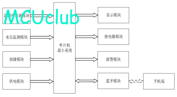 2、通过液位检测模块检测加湿器中是否还有水,如果没有,则自动停止加湿、声光提醒