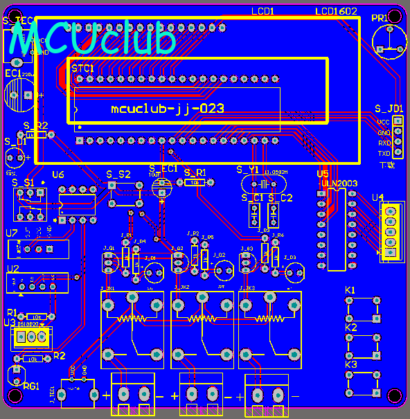 注意:PCB图中间有一个项目编号,隐藏在单片机底座下,插入单片机后不会看到。如果想截没有项目编号的PCB图,可在PCB源文件中点击删除。另外,如果想在实物PCB板上加自己的信息(比如日期、学号、姓名等),可联系客服。