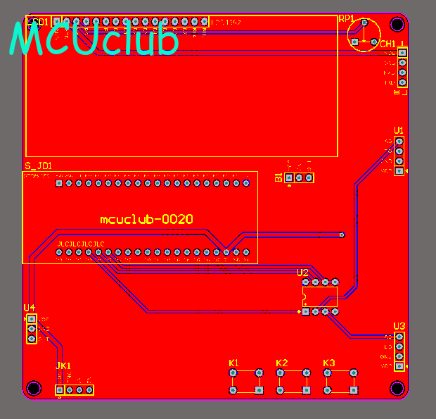注意:PCB图中间有一个项目编号,隐藏在单片机底座下,插入单片机后不会看到。如果想截没有项目编号的PCB图,可在PCB源文件中点击删除。另外,如果想在实物PCB板上加自己的信息(比如日期、学号、姓名等),可联系客服。