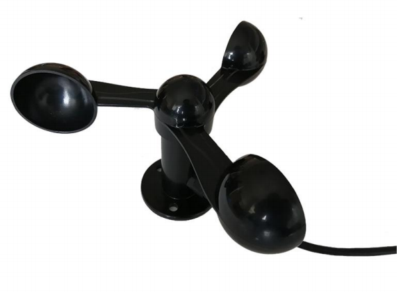 本风速传感器采用小型直流有刷电机与三杯式旋转风杯组装而成,其工作原理为,当环境有水平流动风时,旋转风杯能够产生旋转,并带动小型电机产生电压,其电压与旋转速度基本成正比。利用此信号电压,可以对环境风速进行测量。