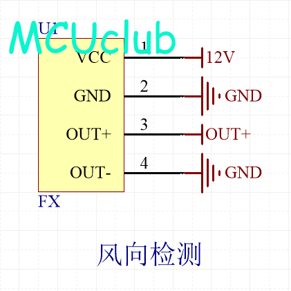 | 3 | OUT+ | 风向信号正(蓝色线) |