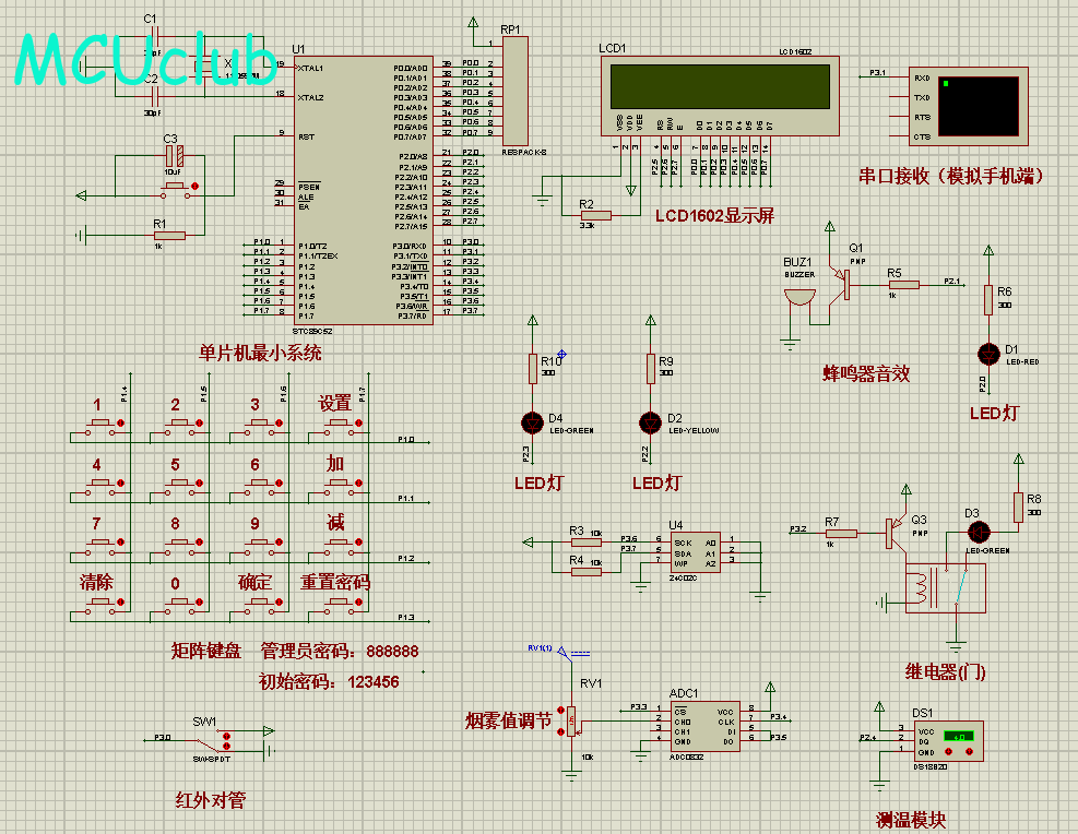 1、通过4*4的矩阵键盘可输入密码、重置密码