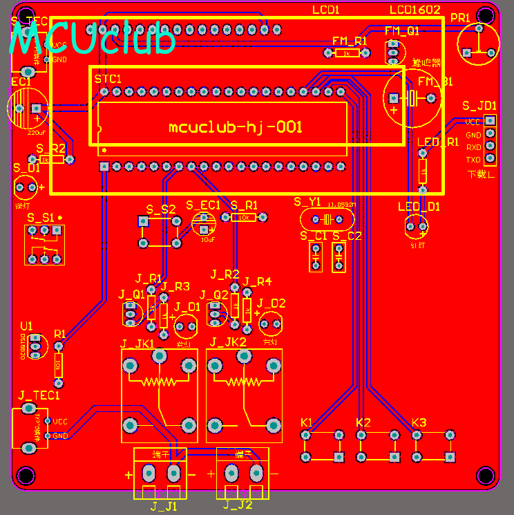 注意:PCB图中间有一个项目编号,隐藏在单片机底座下,插入单片机后不会看到。如果想截没有项目编号的PCB图,可在PCB源文件中点击删除。另外,如果想在实物PCB板上加自己的信息(比如日期、学号、姓名等),可联系客服。