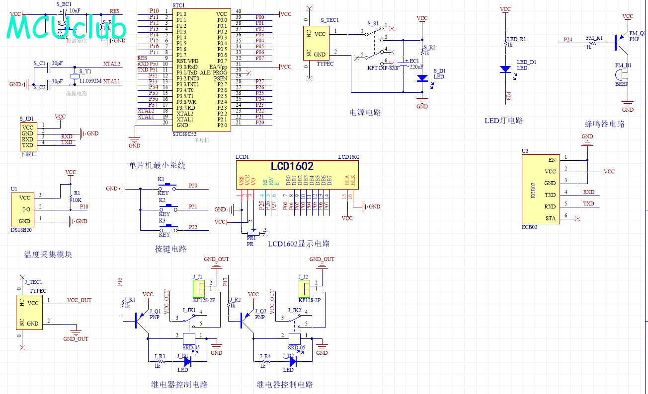 1、通过DS18B20测量环境温度,当温度不在设定的上下限值之内时,进行相应的加热制冷,并进行声光报警