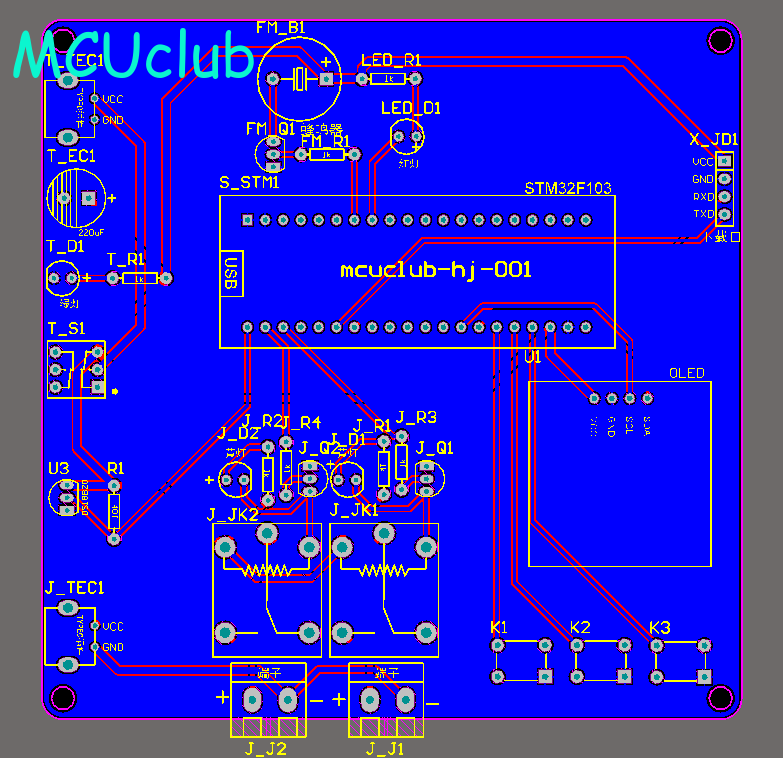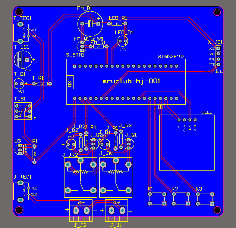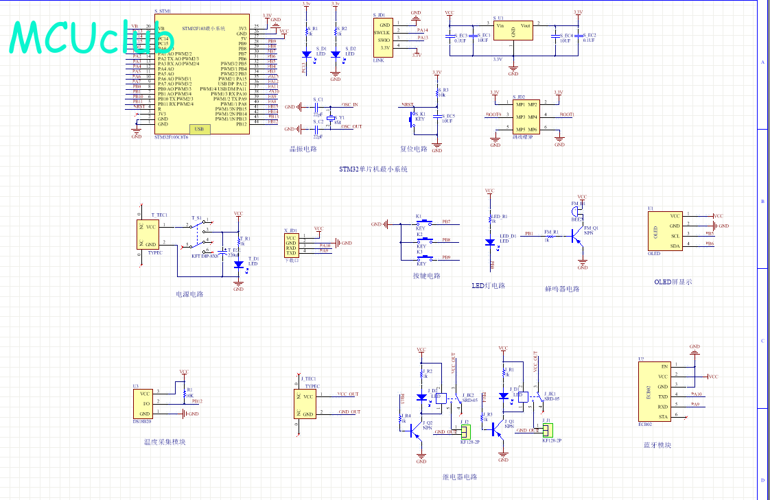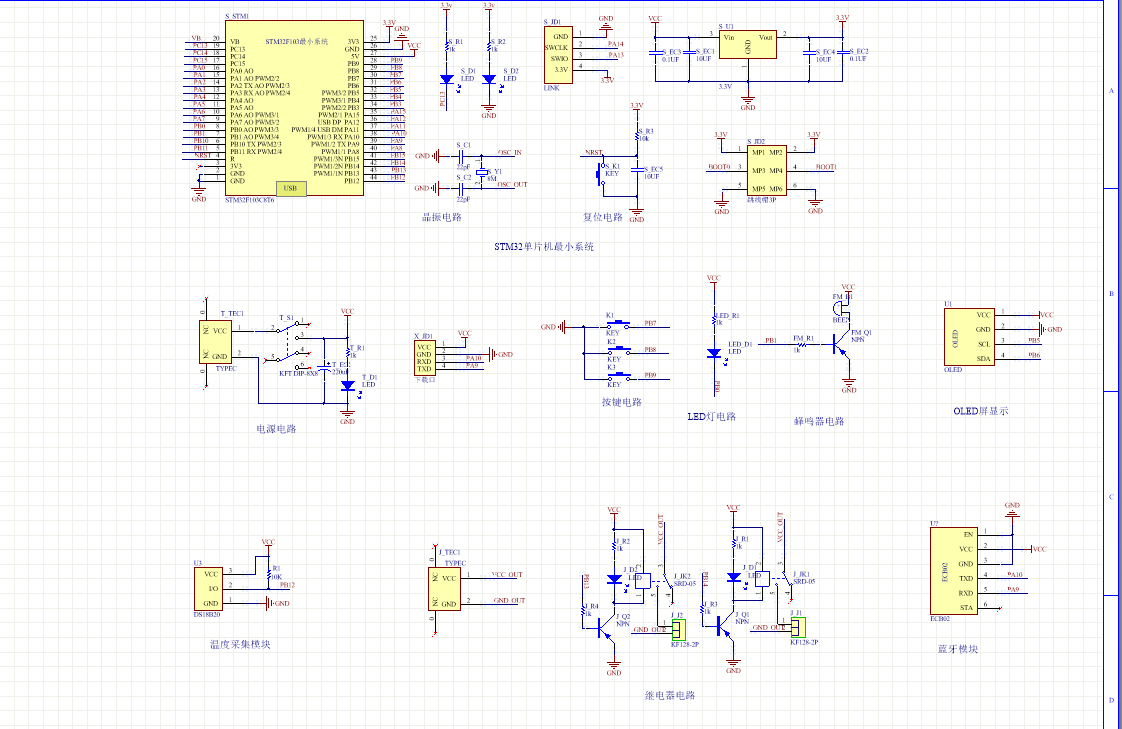 PCB图是由原理图导出,封装很大一部分都是作者自己绘制,不提供封装库,只提供连接好的源文件,可以直接在嘉立创进行打板。两层板,上下覆铜接地。