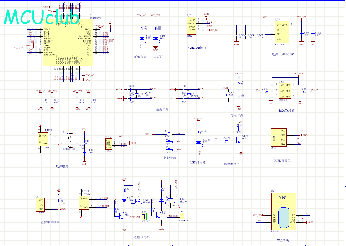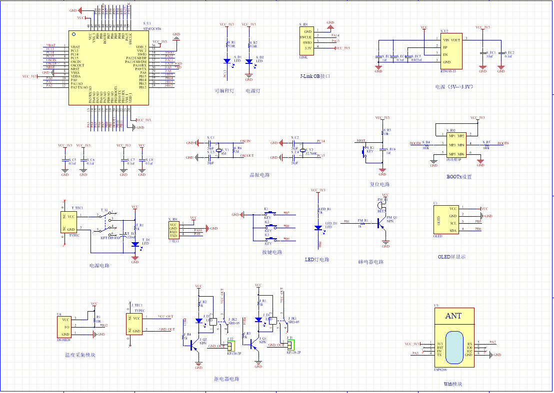PCB图是由原理图导出,封装很大一部分都是作者自己绘制,不提供封装库,只提供连接好的源文件,可以直接在嘉立创进行打板。两层板,上下覆铜接地。