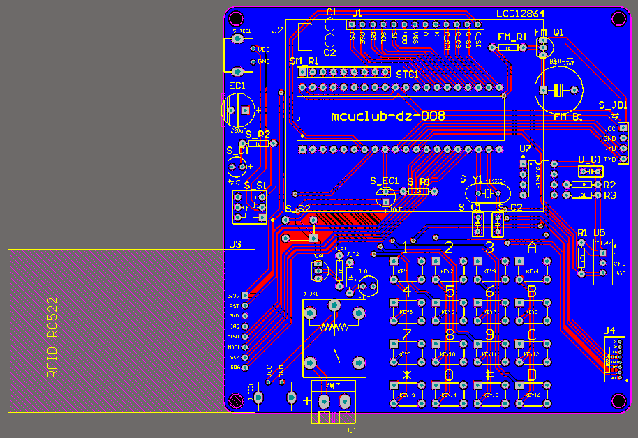 注意:PCB图中间有一个项目编号,隐藏在单片机底座下,插入单片机后不会看到。如果想截没有项目编号的PCB图,可在PCB源文件中点击删除。另外,如果想在实物PCB板上加自己的信息(比如日期、学号、姓名等),可联系客服。