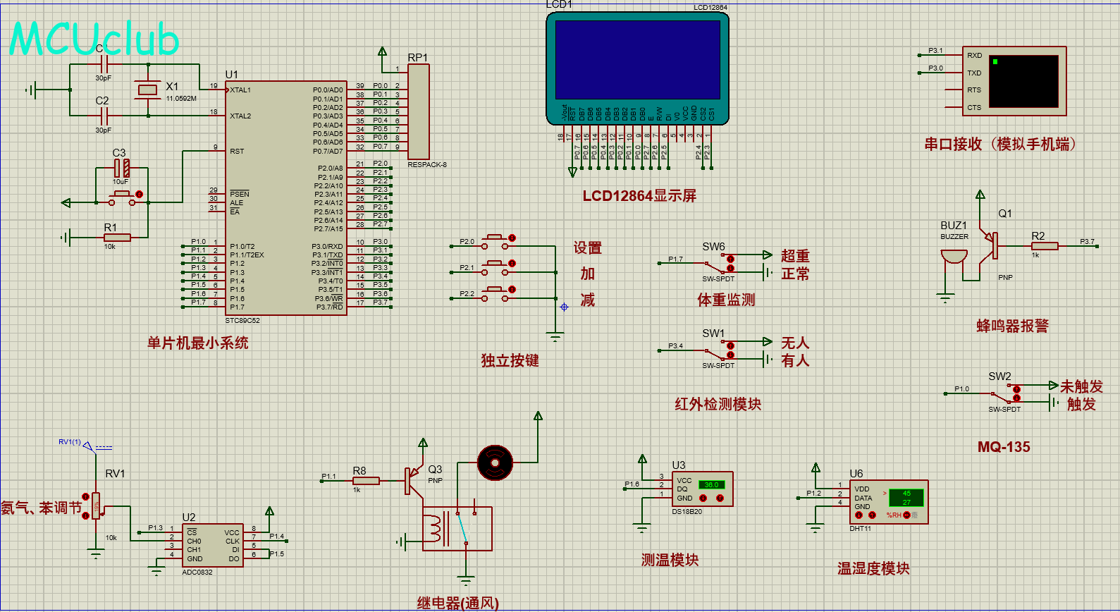 注意:部分实物元器件仿真中没有,仿真中会用其他工作原理相似的元件代替,这样可能导致实物程序和仿真程序不一样