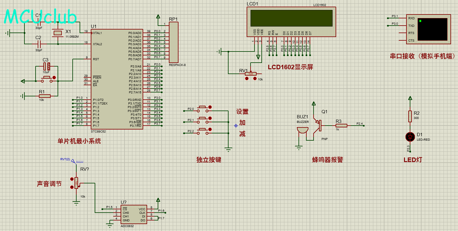 注意:部分实物元器件仿真中没有,仿真中会用其他工作原理相似的元件代替,这样可能导致实物程序和仿真程序不一样