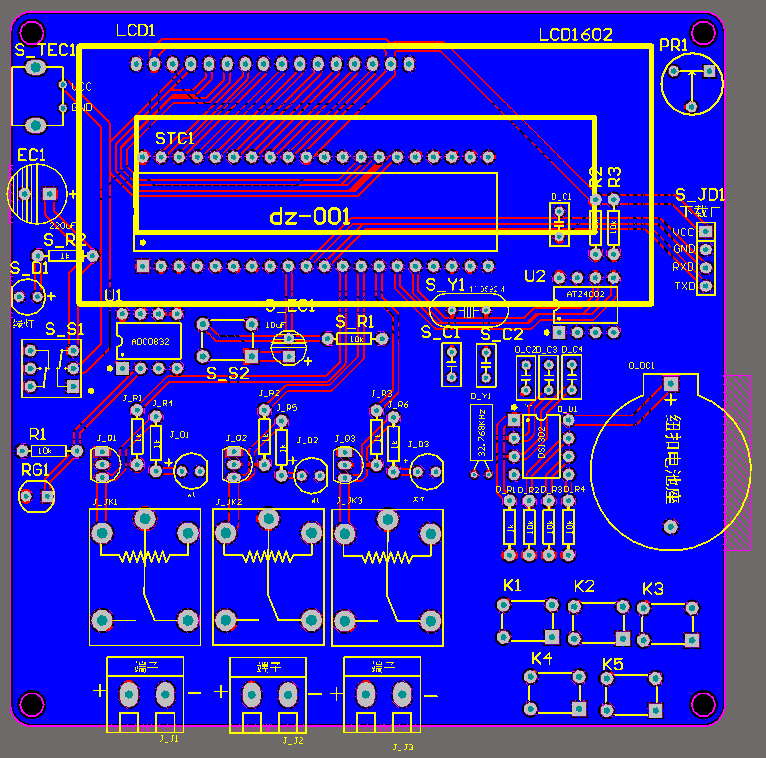 注意:PCB图中间有一个项目编号,隐藏在单片机底座下,插入单片机后不会看到。如果想截没有项目编号的PCB图,可在PCB源文件中点击删除。另外,如果想在实物PCB板上加自己的信息(比如日期、学号、姓名等),可联系客服。