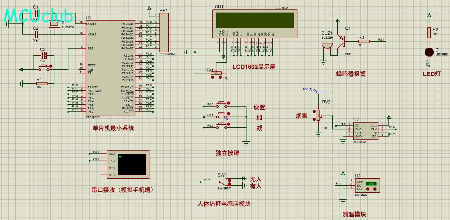注意:部分实物元器件仿真中没有,仿真中会用其他工作原理相似的元件代替,这样可能导致实物程序和仿真程序不一样