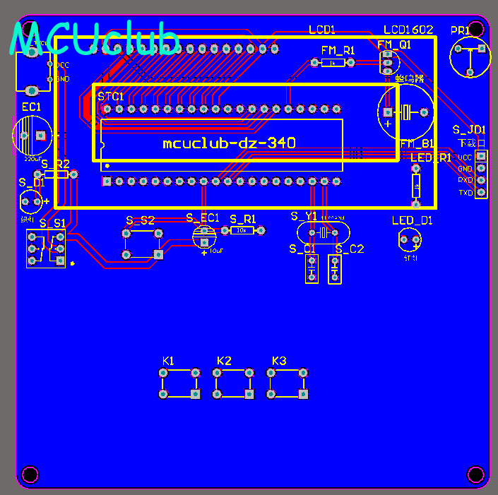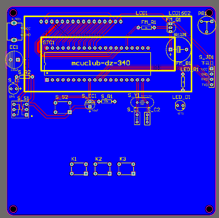 注意:PCB图中间有一个项目编号,隐藏在单片机底座下,插入单片机后不会看到。如果想截没有项目编号的PCB图,可在PCB源文件中点击删除。另外,如果想在实物PCB板上加自己的信息(比如日期、学号、姓名等),可联系客服。