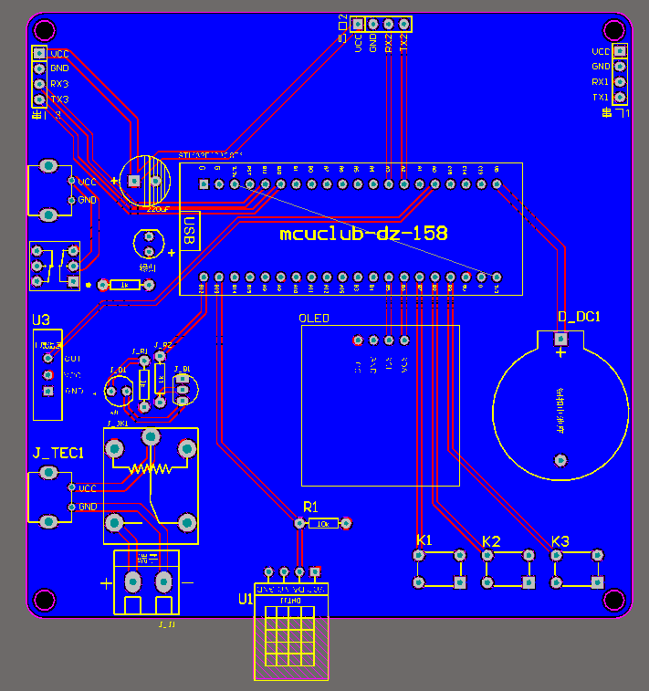 注意:PCB图中间有一个项目编号,隐藏在单片机底座下,插入单片机后不会看到。如果想截没有项目编号的PCB图,可在PCB源文件中点击删除。另外,如果想在实物PCB板上加自己的信息(比如日期、学号、姓名等),可联系客服。