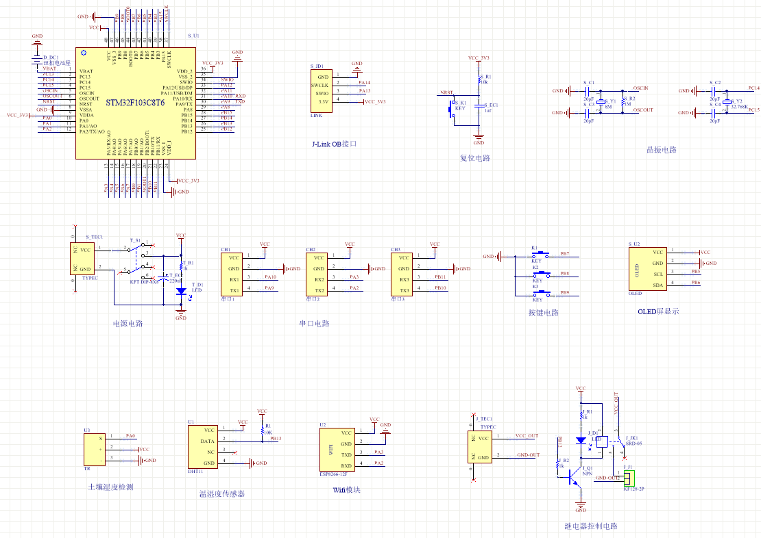PCB图是由原理图导出,封装很大一部分都是作者自己绘制,不提供封装库,只提供连接好的源文件,可以直接在嘉立创进行打板。两层板,上下覆铜接地。