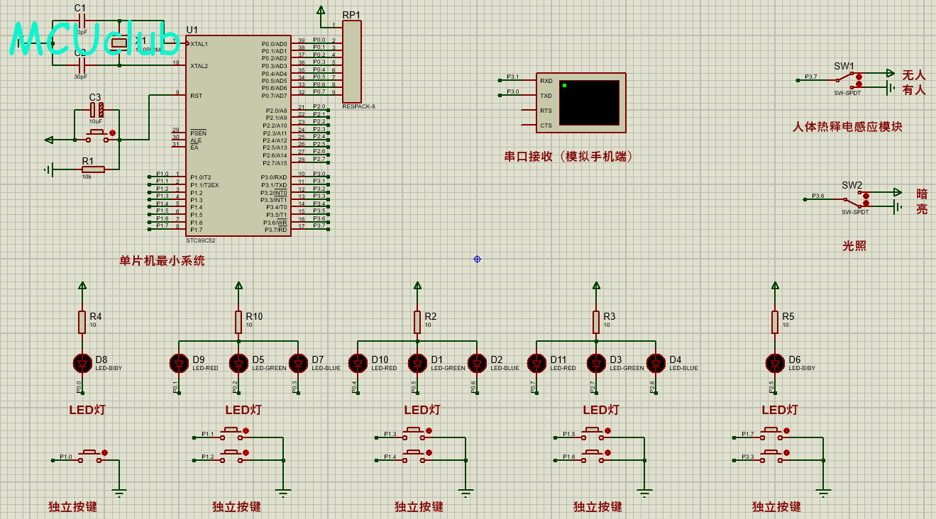 注意:部分实物元器件仿真中没有,仿真中会用其他工作原理相似的元件代替,这样可能导致实物程序和仿真程序不一样
