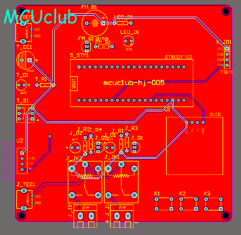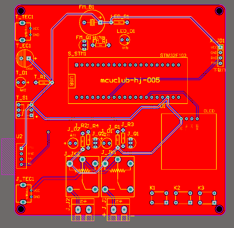 注意:PCB图中间有一个项目编号,隐藏在单片机底座下,插入单片机后不会看到。如果想截没有项目编号的PCB图,可在PCB源文件中点击删除。另外,如果想在实物PCB板上加自己的信息(比如日期、学号、姓名等),可联系客服。