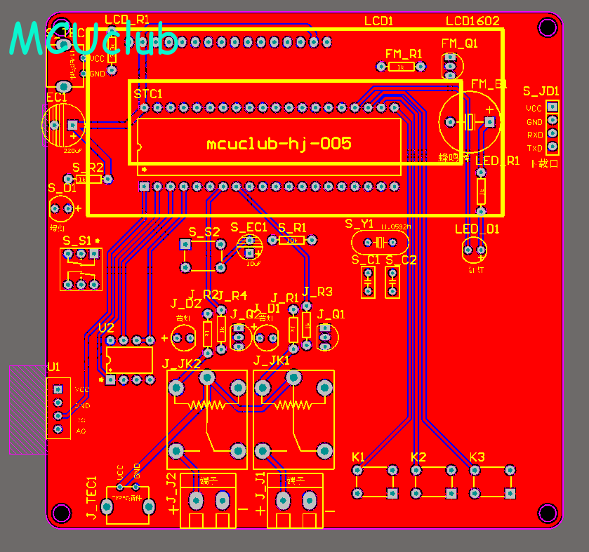注意:PCB图中间有一个项目编号,隐藏在单片机底座下,插入单片机后不会看到。如果想截没有项目编号的PCB图,可在PCB源文件中点击删除。另外,如果想在实物PCB板上加自己的信息(比如日期、学号、姓名等),可联系客服。