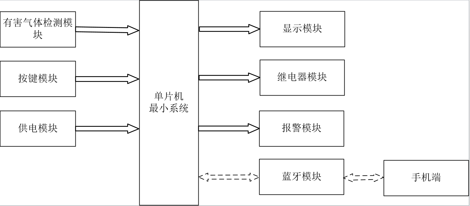 关键词;有害混合气体监测;声光报警;通风;净化器;蓝牙