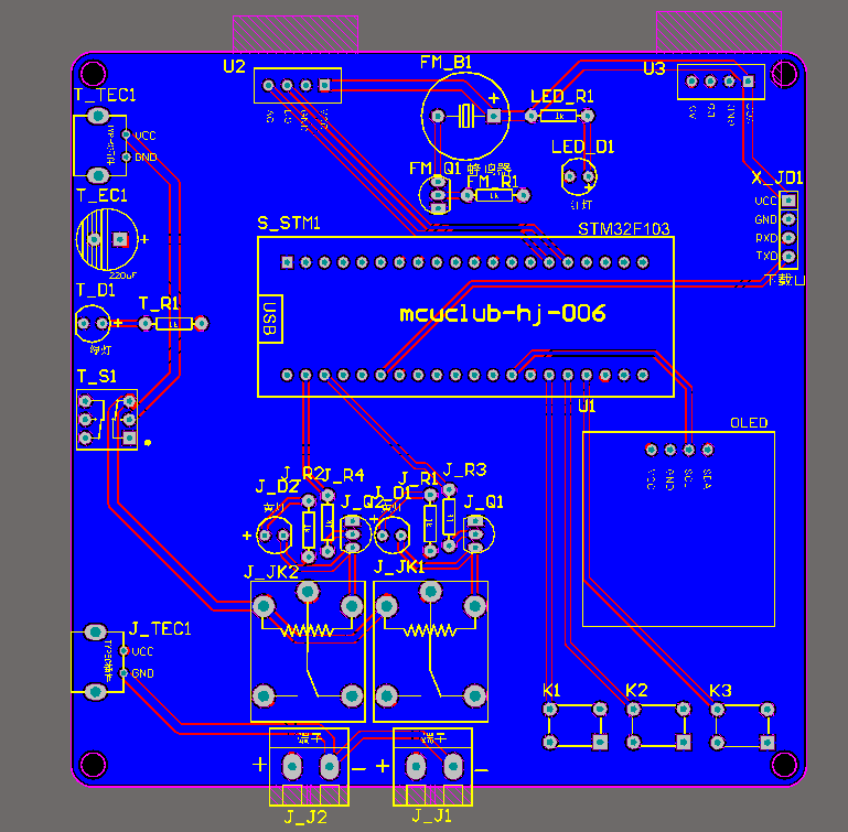 注意:PCB图中间有一个项目编号,隐藏在单片机底座下,插入单片机后不会看到。如果想截没有项目编号的PCB图,可在PCB源文件中点击删除。另外,如果想在实物PCB板上加自己的信息(比如日期、学号、姓名等),可联系客服。