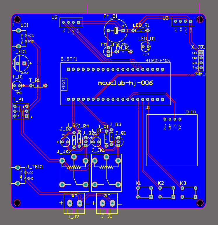注意:PCB图中间有一个项目编号,隐藏在单片机底座下,插入单片机后不会看到。如果想截没有项目编号的PCB图,可在PCB源文件中点击删除。另外,如果想在实物PCB板上加自己的信息(比如日期、学号、姓名等),可联系客服。