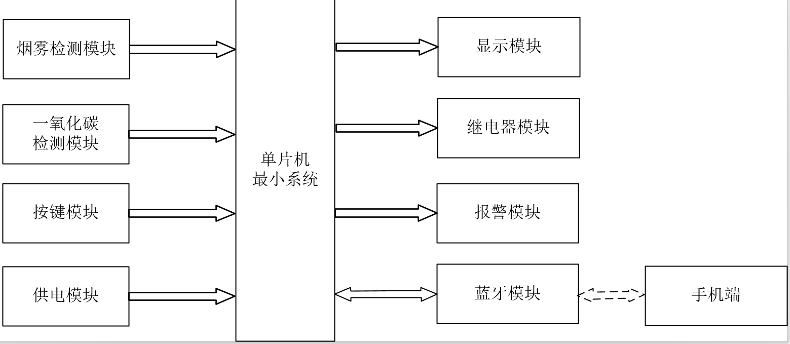 关键词:单片机;煤气监测;烟雾检测;声光报警;通风;净化器;蓝牙