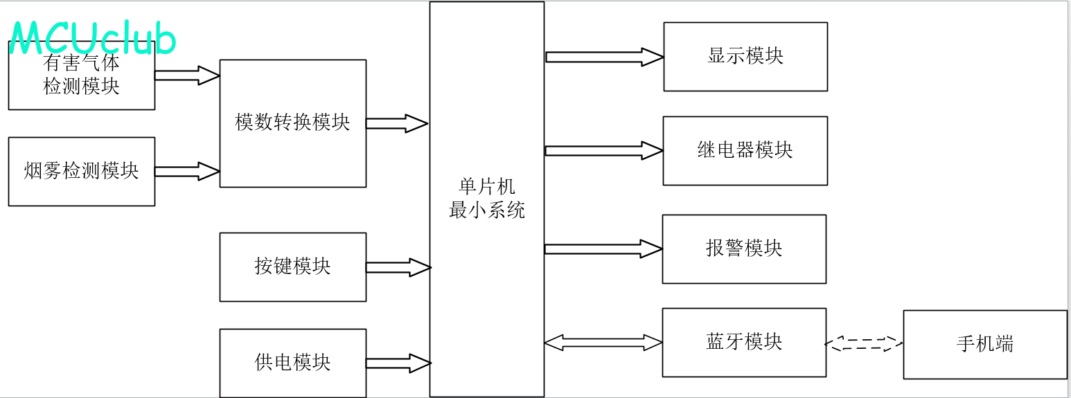 关键词;有害混合气体监测;烟雾检测;声光报警;通风;净化器;蓝牙