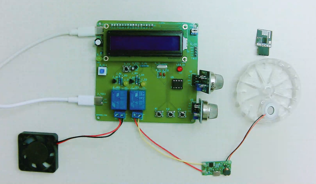 2、通过MQ-135检测有害混合气体值,超过设置最大值进行声光报警,并开启风扇和净化器