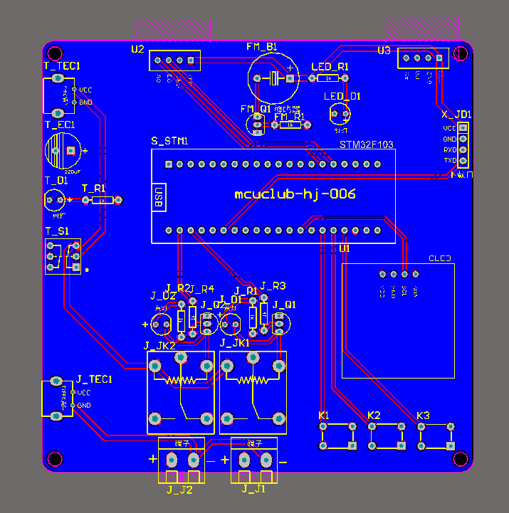 注意:PCB图中间有一个项目编号,隐藏在单片机底座下,插入单片机后不会看到。如果想截没有项目编号的PCB图,可在PCB源文件中点击删除。另外,如果想在实物PCB板上加自己的信息(比如日期、学号、姓名等),可联系客服。