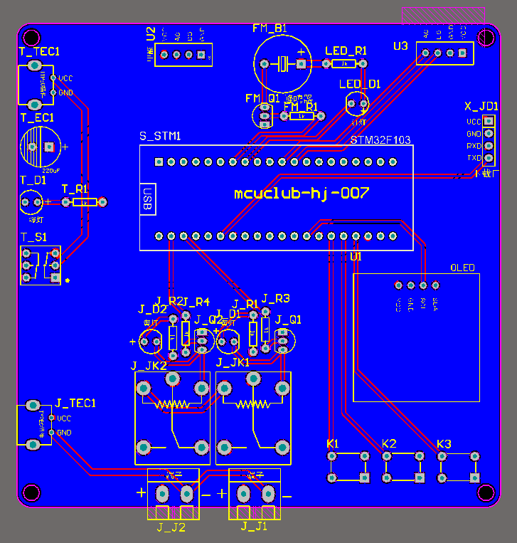 注意:PCB图中间有一个项目编号,隐藏在单片机底座下,插入单片机后不会看到。如果想截没有项目编号的PCB图,可在PCB源文件中点击删除。另外,如果想在实物PCB板上加自己的信息(比如日期、学号、姓名等),可联系客服。