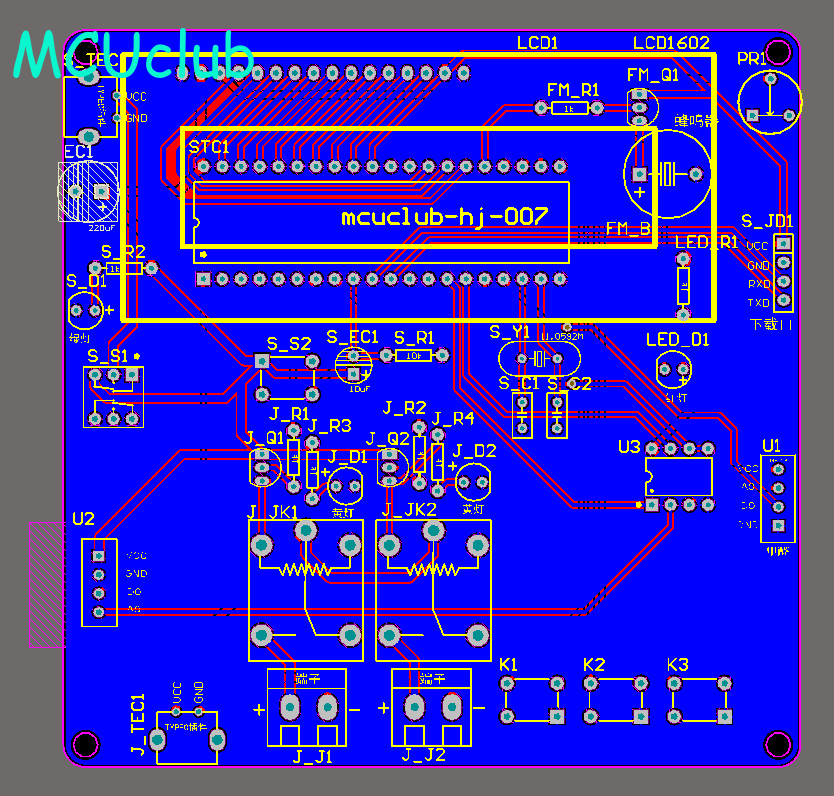 注意:PCB图中间有一个项目编号,隐藏在单片机底座下,插入单片机后不会看到。如果想截没有项目编号的PCB图,可在PCB源文件中点击删除。另外,如果想在实物PCB板上加自己的信息(比如日期、学号、姓名等),可联系客服。