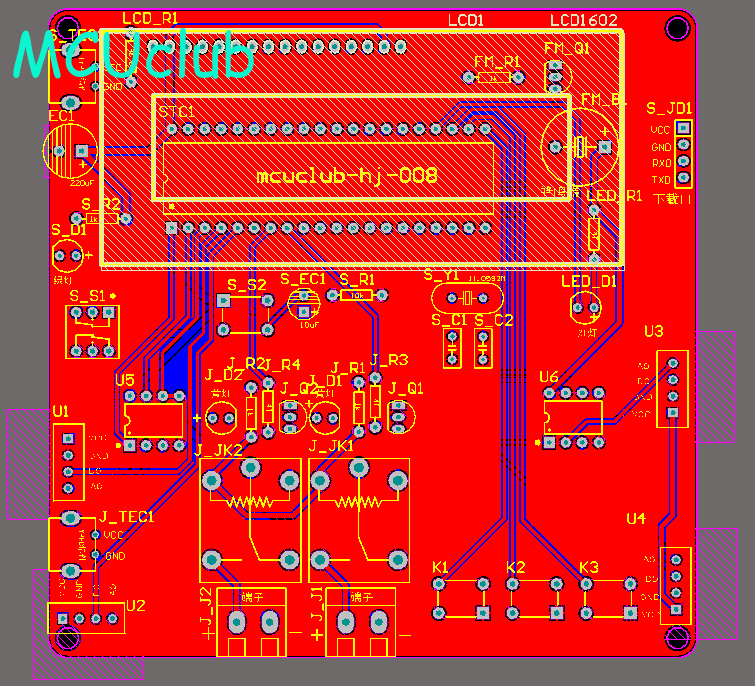 注意:PCB图中间有一个项目编号,隐藏在单片机底座下,插入单片机后不会看到。如果想截没有项目编号的PCB图,可在PCB源文件中点击删除。另外,如果想在实物PCB板上加自己的信息(比如日期、学号、姓名等),可联系客服。