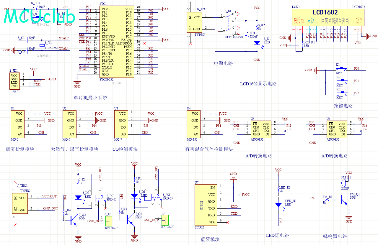 注意:原理图只是画出了模块的引脚图,而并不是模块的内部结构原理图