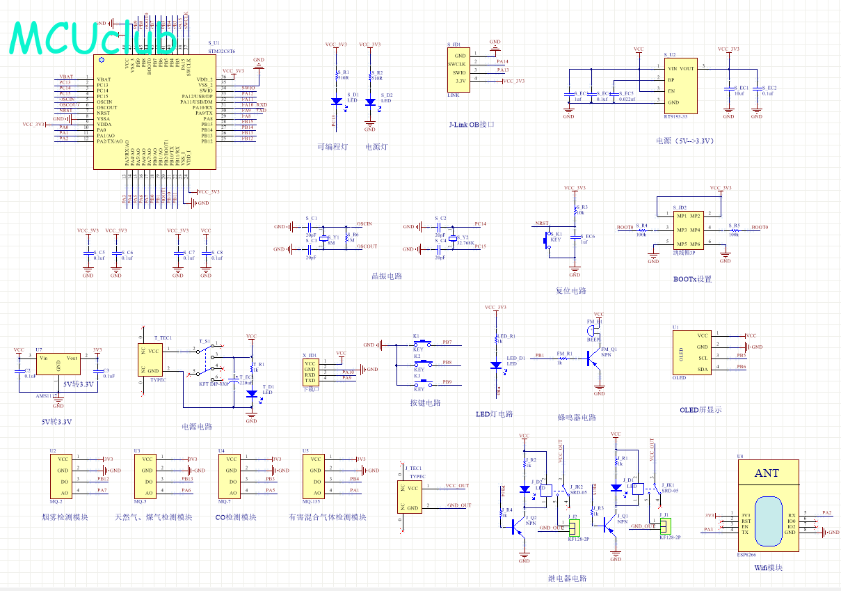 PCB图是由原理图导出,封装很大一部分都是作者自己绘制,不提供封装库,只提供连接好的源文件,可以直接在嘉立创进行打板。两层板,上下覆铜接地。