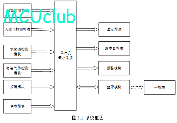 1、通过MQ-2检测烟雾值,超过设置最大值进行声光报警,并开启风扇和净化器