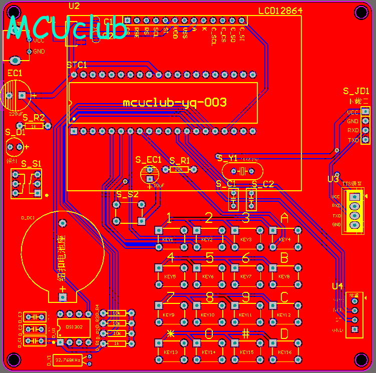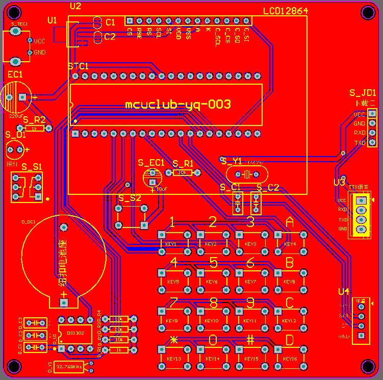 注意:PCB图中间有一个项目编号,隐藏在单片机底座下,插入单片机后不会看到。如果想截没有项目编号的PCB图,可在PCB源文件中点击删除。另外,如果想在实物PCB板上加自己的信息(比如日期、学号、姓名等),可联系客服。