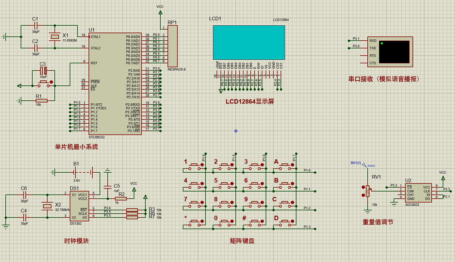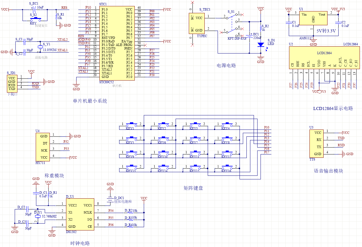 关键词:称重;语音播报;矩阵键盘;LCD12864液晶显示
