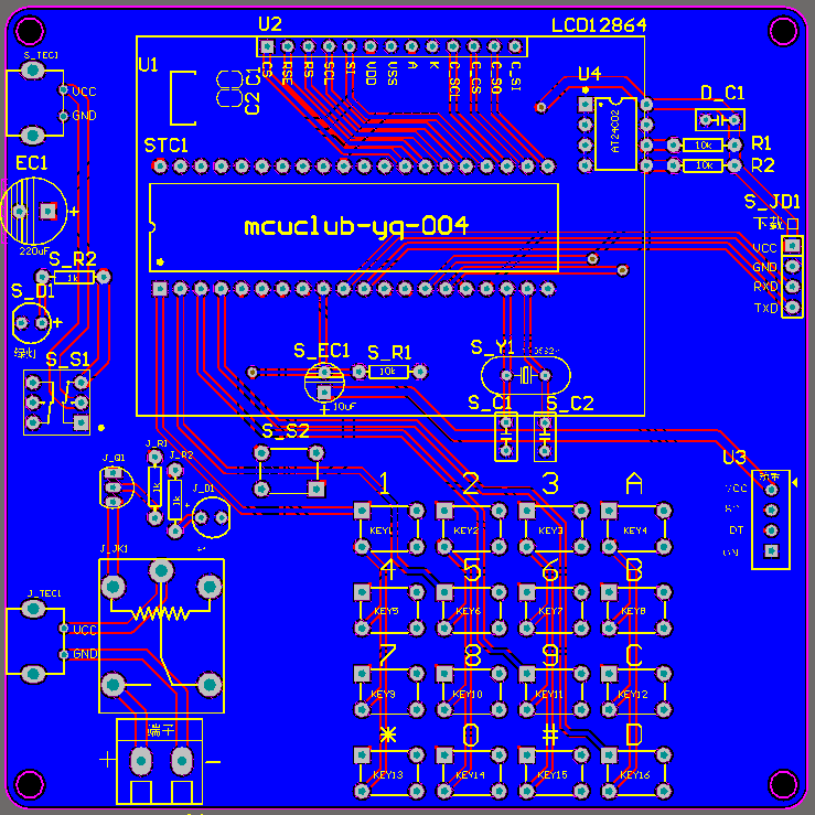 注意:PCB图中间有一个项目编号,隐藏在单片机底座下,插入单片机后不会看到。如果想截没有项目编号的PCB图,可在PCB源文件中点击删除。另外,如果想在实物PCB板上加自己的信息(比如日期、学号、姓名等),可联系客服。