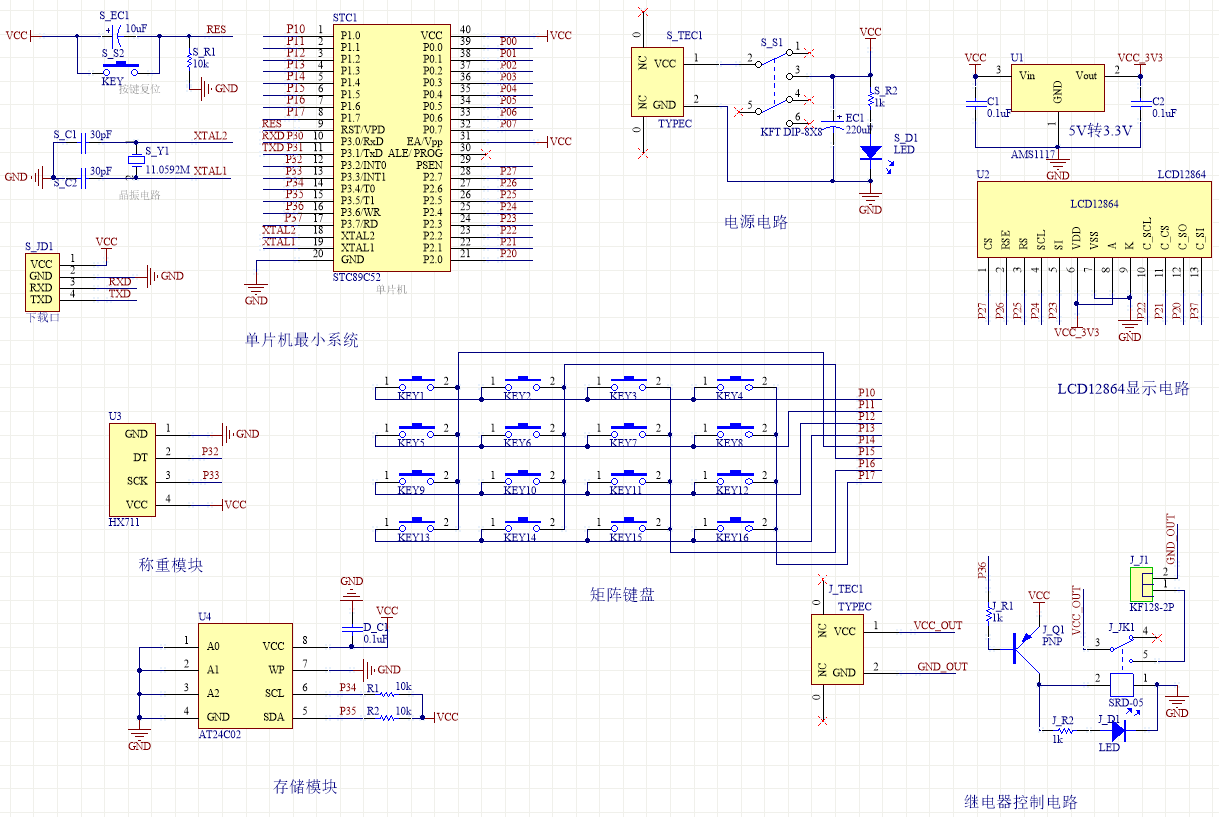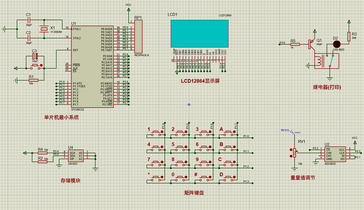 关键词:称重;矩阵键盘;LCD12864液晶显示