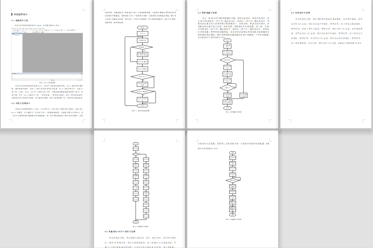 随着人们生活水平的提高,进行商品的交流次数和速度也越来越块,而对当前的物品进行称重的需求也越来越高,而当前进行物品的称重,很多用户看不了测量的界面,而对于物品的测量,也只是用户通过看当前的重量,然后计算价格得出总重量,而计算过程出错或者看错都会给人们的生活带来一定的损失,因此此次设计一款智能超市电子称,该设计通过软件和硬件来进行设计,硬件通过HX711对当前物品的重量进行检测,采用AT24C02存储商品数据,当输入正确编号后,算出价格,继电器闭合模拟打印小票;软件设计:采用Keil5作为此次设计程序编程软件,采用AD作为此次设计的原理图和PCB的绘制软件,采用stc-isp作为此次设计程序的烧录软件,采用Visio作为此次设计的流程图绘制软件;通过软硬件配合进行设计,可以实现不同重量不同价格的物品进行称重,并将检测的重量进行显示出来。