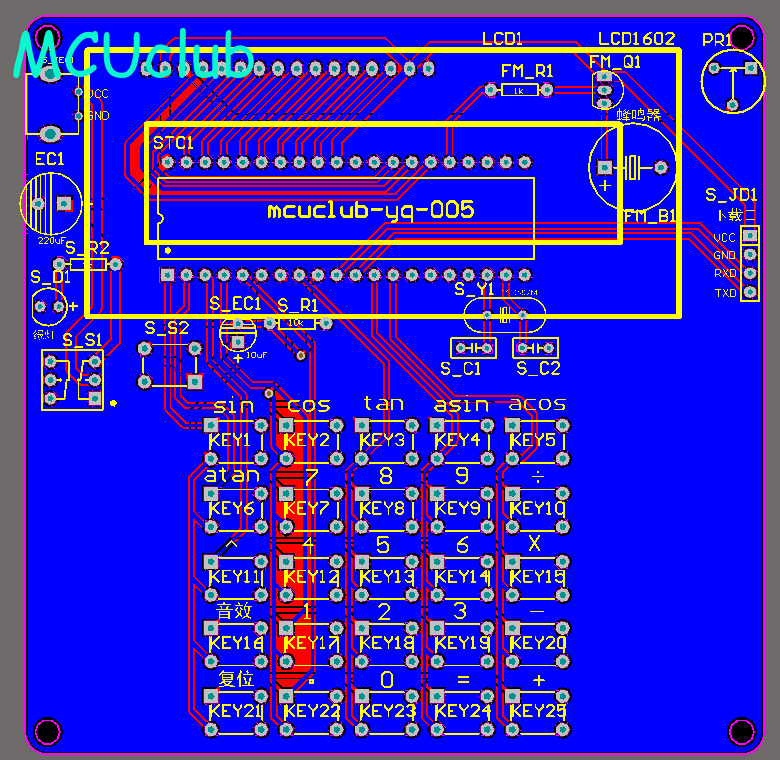 注意:PCB图中间有一个项目编号,隐藏在单片机底座下,插入单片机后不会看到。如果想截没有项目编号的PCB图,可在PCB源文件中点击删除。另外,如果想在实物PCB板上加自己的信息(比如日期、学号、姓名等),可联系客服。