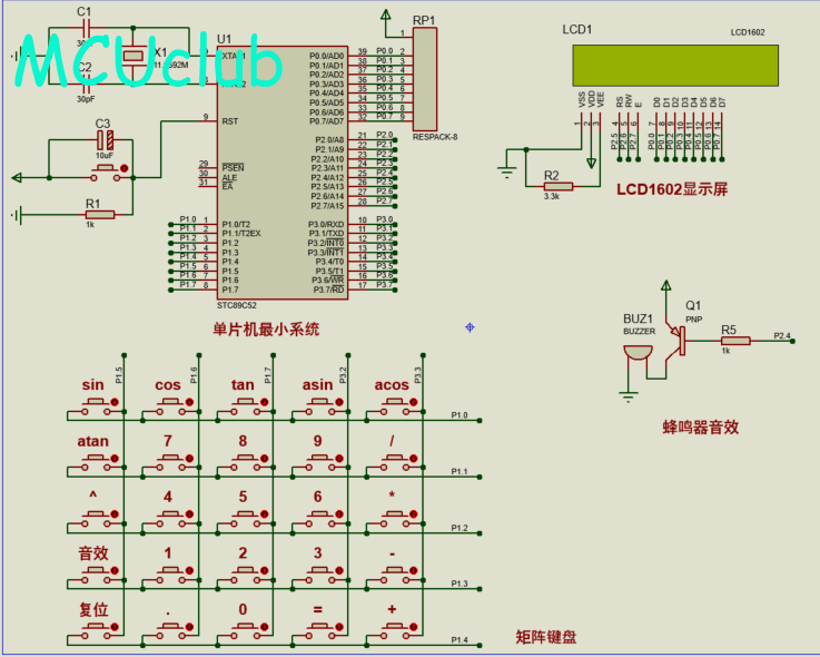 1、可以实现简单的计算器+、-、×、÷、复位的功能;