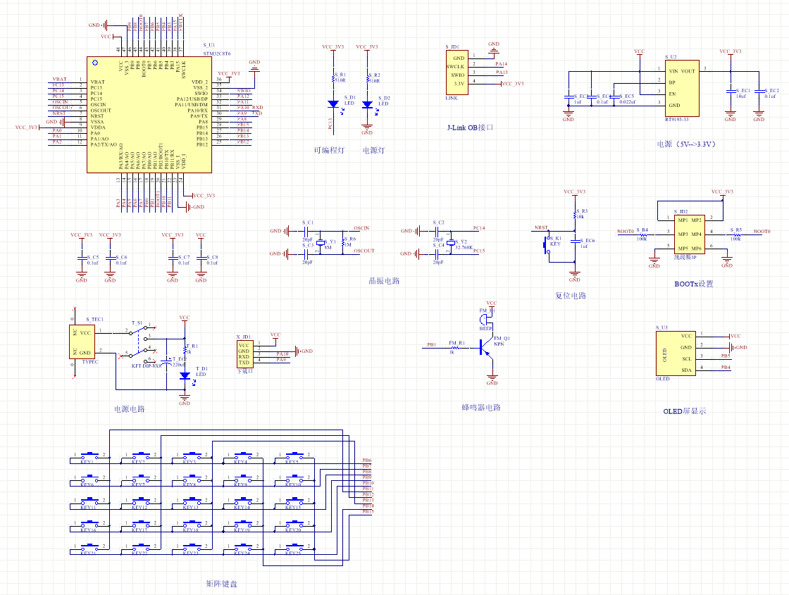 PCB图是由原理图导出,封装很大一部分都是作者自己绘制,不提供封装库,只提供连接好的源文件,可以直接在嘉立创进行打板。两层板,上下覆铜接地。