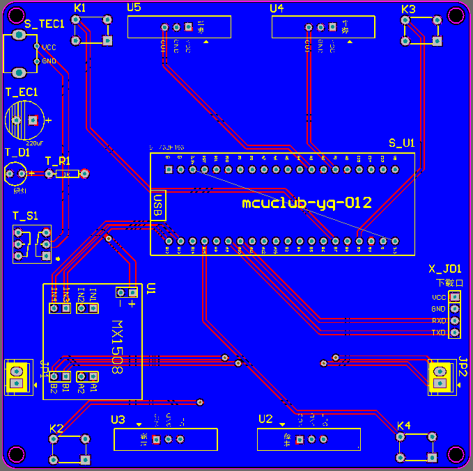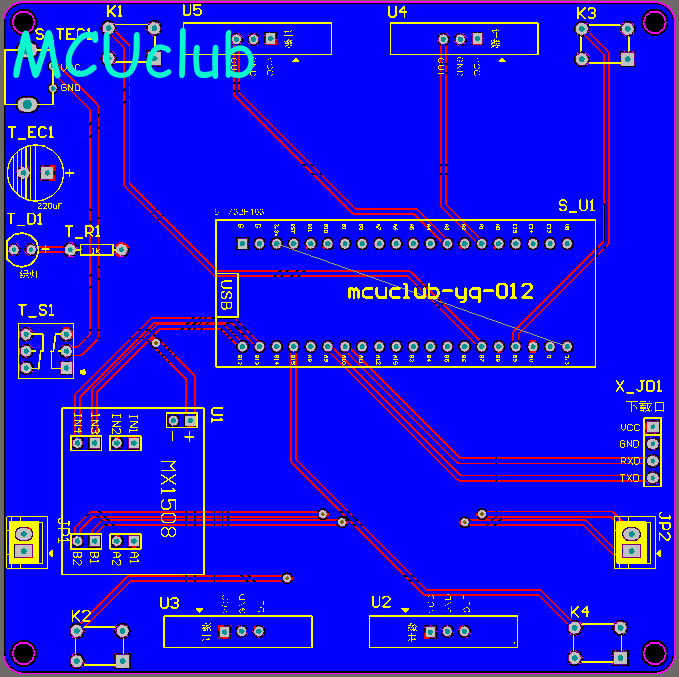 注意:PCB图中间有一个项目编号,隐藏在单片机底座下,插入单片机后不会看到。如果想截没有项目编号的PCB图,可在PCB源文件中点击删除。另外,如果想在实物PCB板上加自己的信息(比如日期、学号、姓名等),可联系客服。