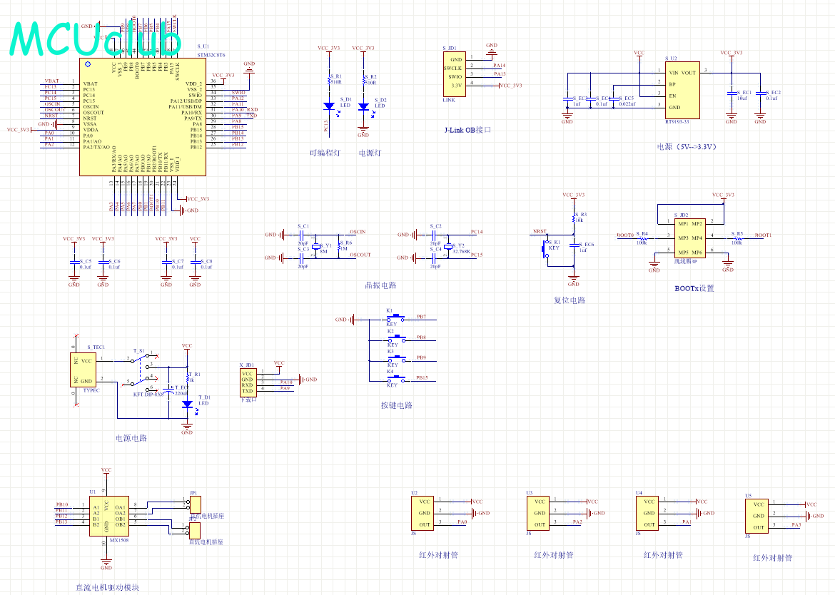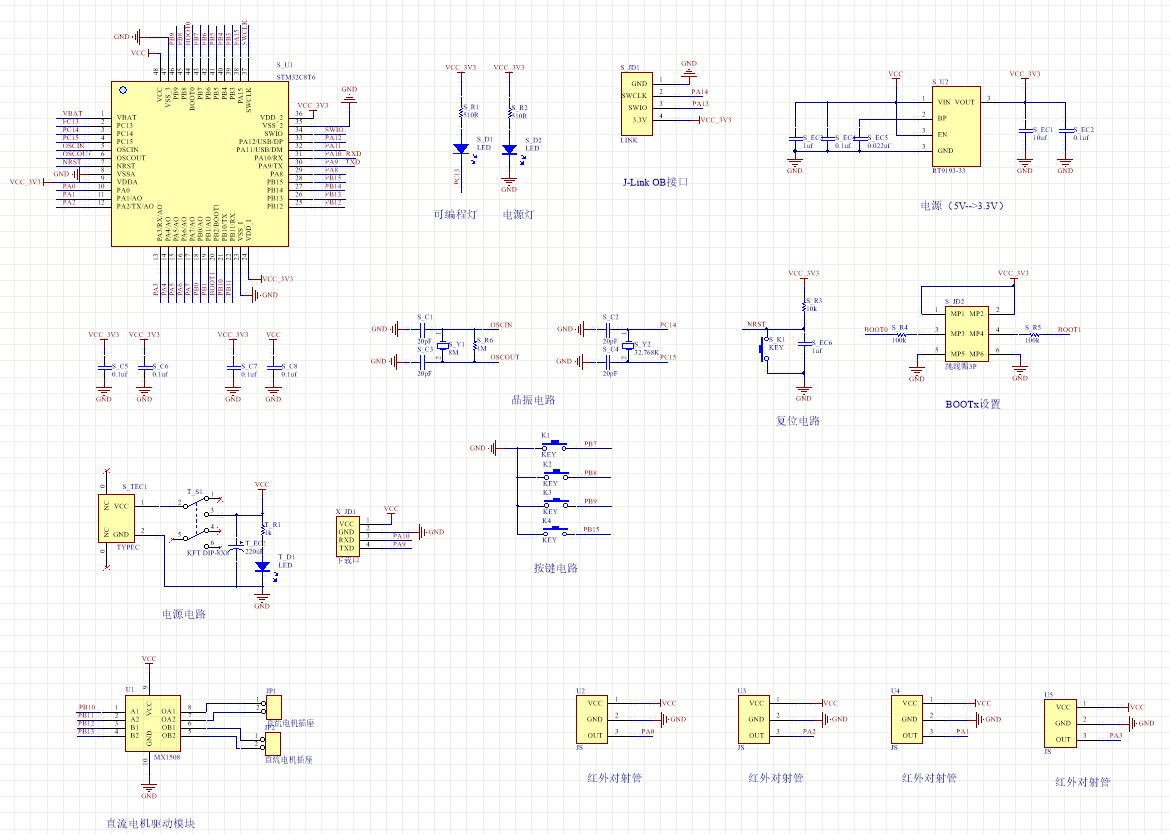 PCB图是由原理图导出,封装很大一部分都是作者自己绘制,不提供封装库,只提供连接好的源文件,可以直接在嘉立创进行打板。两层板,上下覆铜接地。