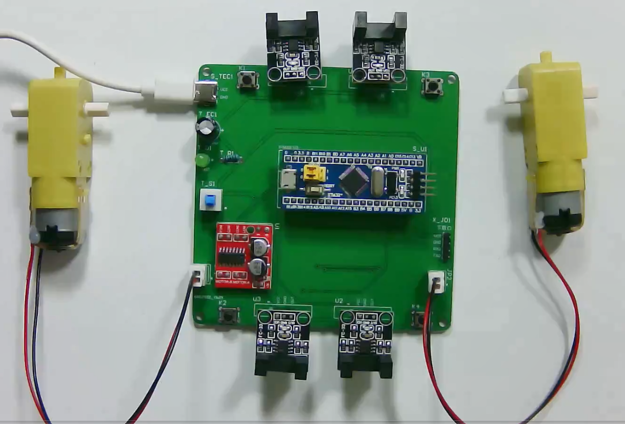 1、通过MX1508驱动两个直流电机模拟上下扶梯(一个正转代表上行,一个反转代表下行)