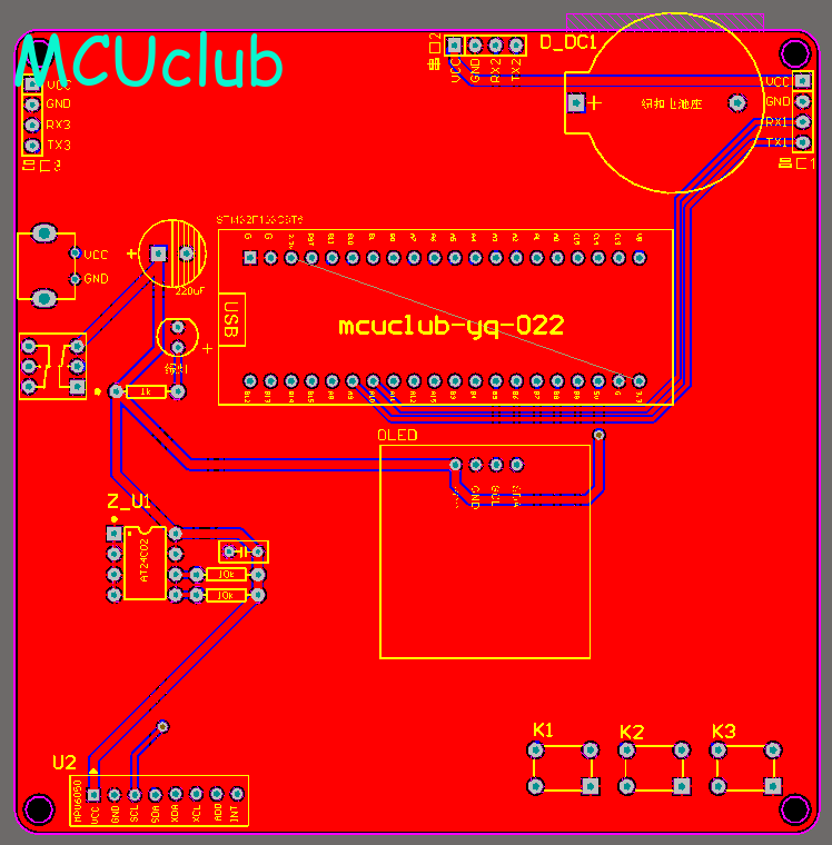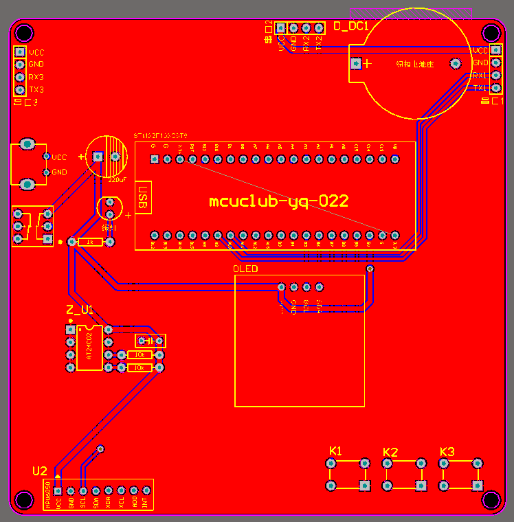 注意:PCB图中间有一个项目编号,隐藏在单片机底座下,插入单片机后不会看到。如果想截没有项目编号的PCB图,可在PCB源文件中点击删除。另外,如果想在实物PCB板上加自己的信息(比如日期、学号、姓名等),可联系客服。