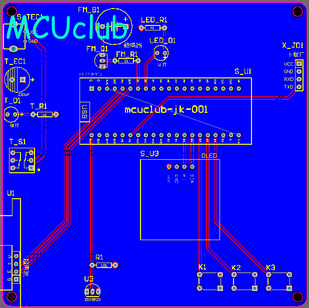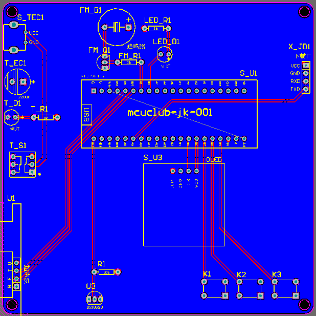 注意:PCB图中间有一个项目编号,隐藏在单片机底座下,插入单片机后不会看到。如果想截没有项目编号的PCB图,可在PCB源文件中点击删除。另外,如果想在实物PCB板上加自己的信息(比如日期、学号、姓名等),可联系客服。
