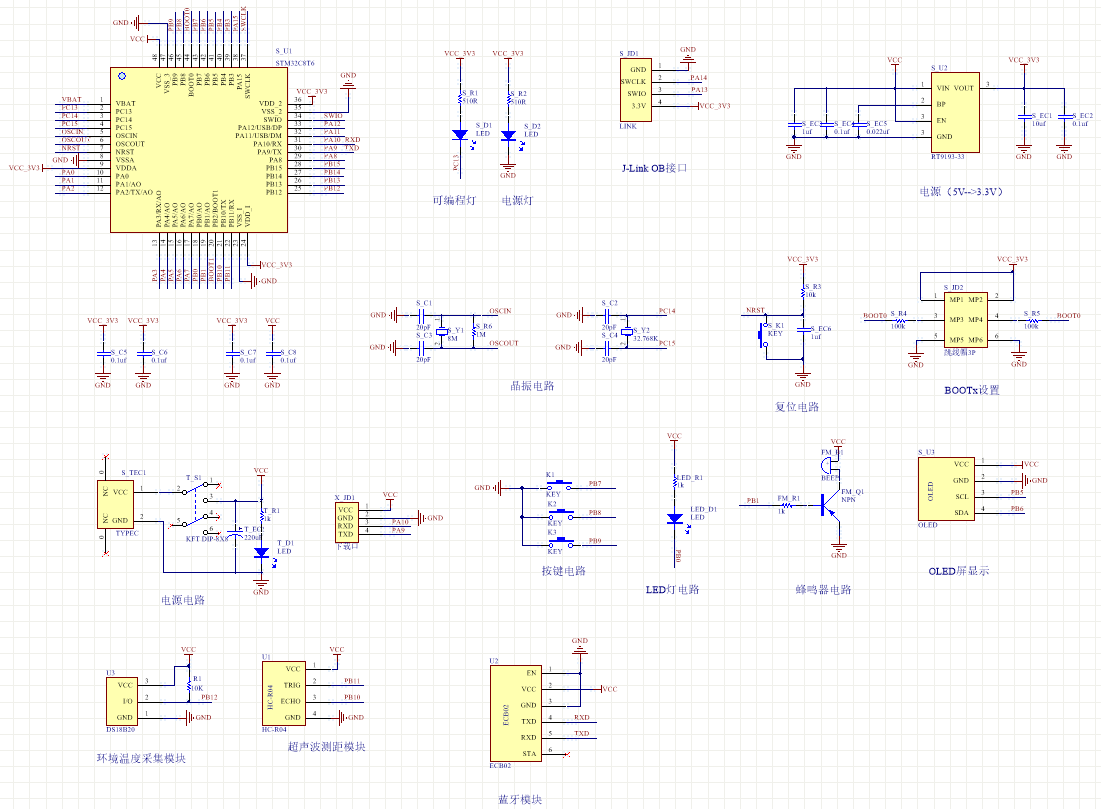 PCB图是由原理图导出,封装很大一部分都是作者自己绘制,不提供封装库,只提供连接好的源文件,可以直接在嘉立创进行打板。两层板,上下覆铜接地。